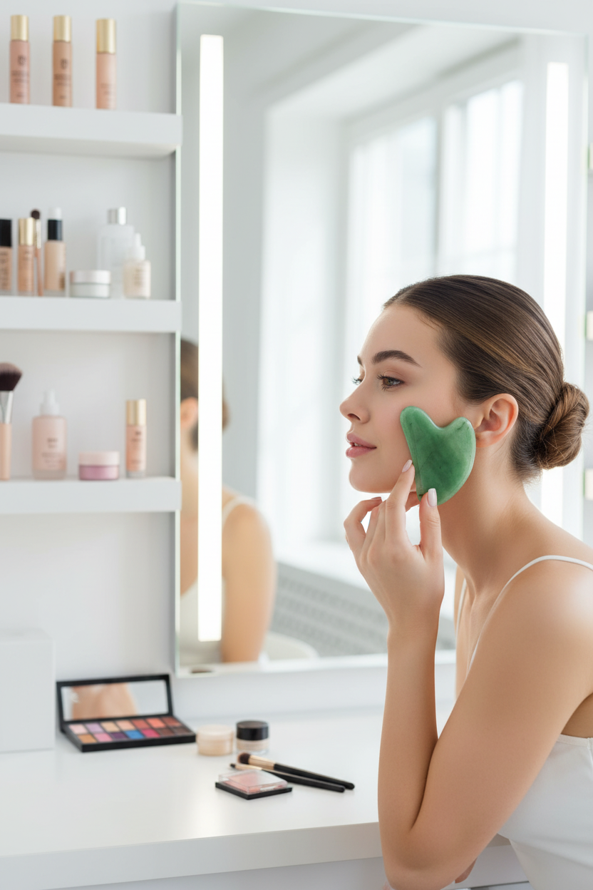 Leave your jade roller and gua sha in the fridge to cool the skin.